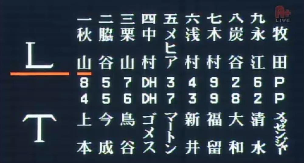 それまで浅村DHで、メヒア一、金子二、永江遊、中村三というのも、力は落ちますが…
