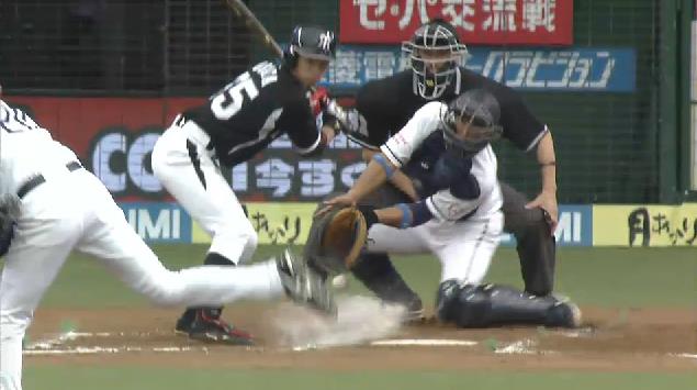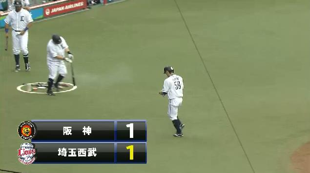 栗山はフォアボールを選び押し出し、同点に追いつく