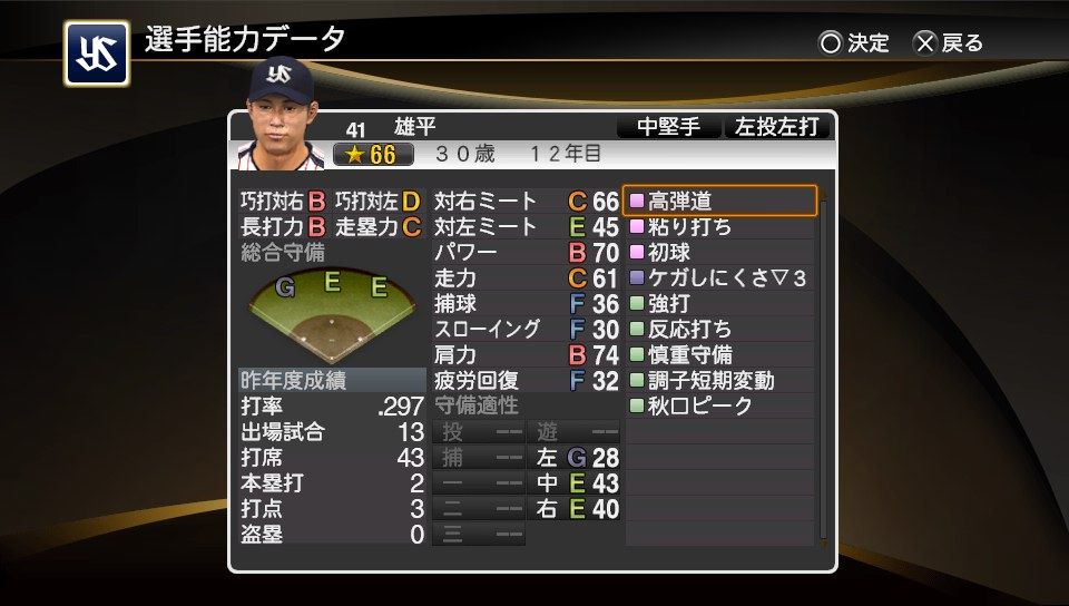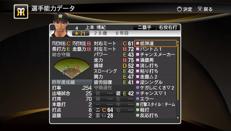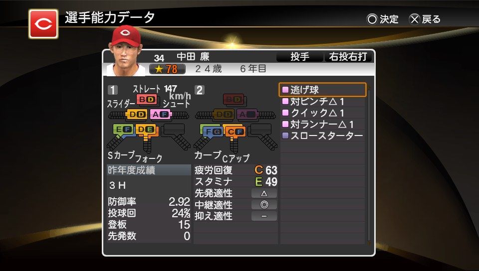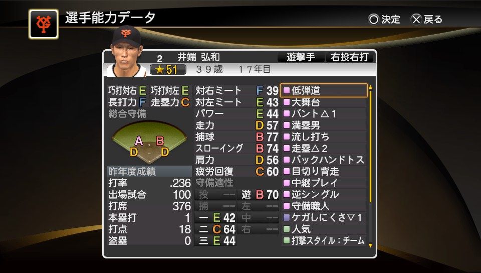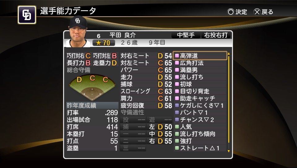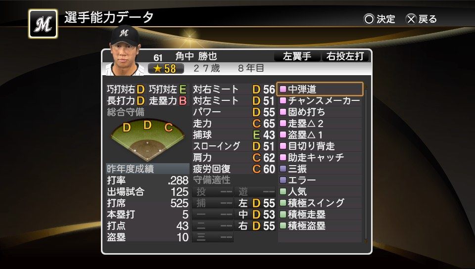 あとついでに中井の守備力(特にセカンド)上がってる?