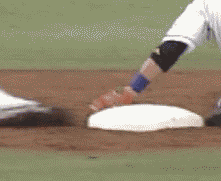 完全にベースと足の間に入っている永江のタッチ