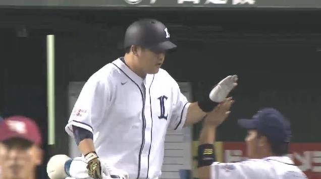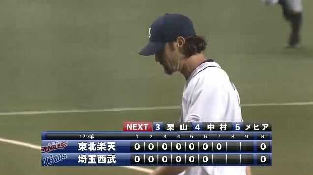 7回裏 栗山がヒジをかすめてデッドボールで出塁