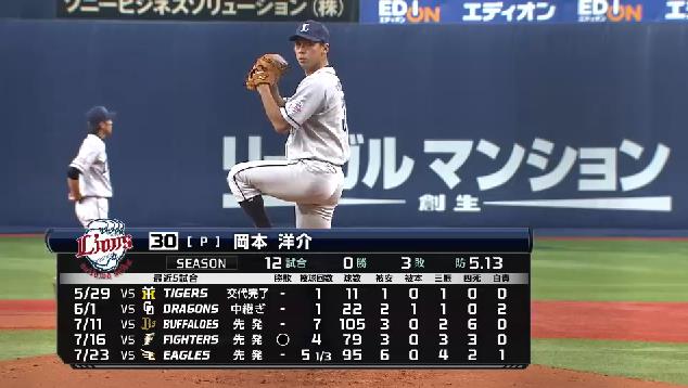 今季初勝利の岡本洋、謙虚に「助けられながらの投球」西武が岡本洋の好投でオリックスとの投手戦を制し、連敗を3で止めた。昨年9月22日のオリックス戦以来となる、今季初白星を手にした岡本洋は「前半戦はチームに迷惑をかけた。これから貢献していきたい」と笑顔はなく、まず前半戦にチームに貢献できなかった悔しさを吐露した。この日は6回2/3を投げ、3安打無四球無失点の好投。「キャッチャーのリード通り、丁寧に投げることを考えた」と振り返り、ここ23イニングで自責点1の好調ぶりには「キャッチャーの銀次郎(炭谷)に引っ張ってもらい、野手に助けられながらの投球」と、謙虚に語った。(スポニチ)