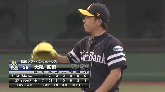 7回表 3番手岡本篤が細川に犠牲フライを打たれホークス追加点