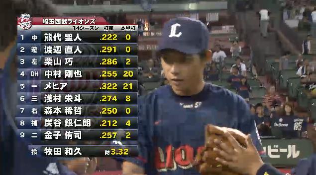 栗山メヒア浅村中村で宜しく、本当は山川上げてスタメンにしてほしいが