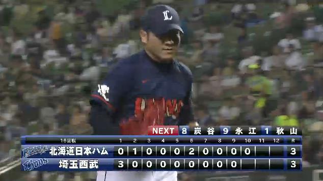 連日の5時間超え 西武―日本ハムは2試合連続でドロー両チーム7投手づつ、合わせて14投手をつぎ込み、連日の5時間超えの試合となった西武―日本ハム戦(西武D)は、3―3で2試合連続となる延長12回引き分けに終わった。初回、今季4試合対戦して3敗を喫し、防御率0・68と苦手の日本ハム先発・大谷から中村が2試合連続となる22号左越え3ランが飛び出して先制。西武先発の小石は12年7月11日のソフトバンク戦以来となる先発登板で、5回まで投げて3安打1失点としっかり試合をつくり、勝利投手の権利を残したままマウンドを降りたが、救援陣が踏ん張れなかった。(スポニチ)