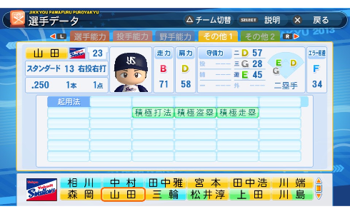 AH、対左2、盗塁2、広角打法、逆境、固め打ち、エラー、選球眼、人気