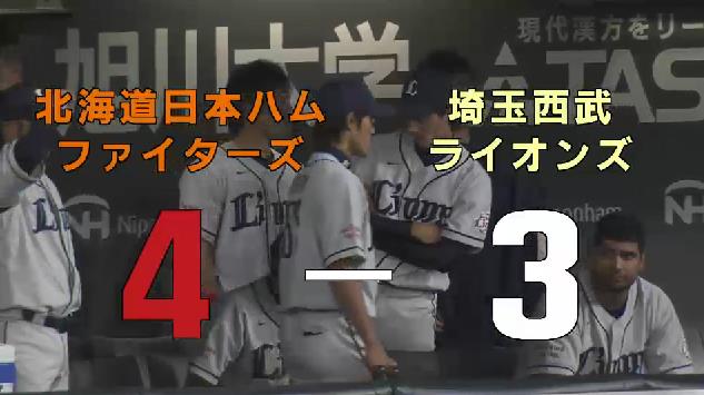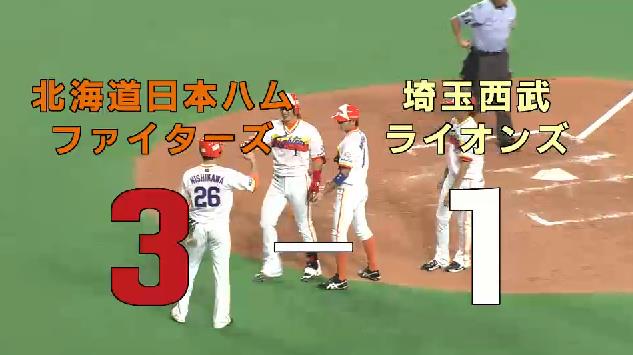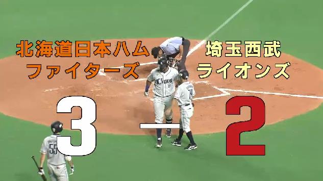 日本ハム、陽V弾で連勝 西武は連敗西武は3回、浅村の10号ソロで1点を先制。日本ハムはその裏、陽岱鋼が左翼へ18号3ランを放って逆転に成功した。日本ハム上沢は6回まで2安打1失点と好投。西武は先発の岸が5回4安打3失点で降板し、6回から継投に入った。日本ハム8回に1度追いつかれたが、その裏に陽岱鋼が1試合2本目となる決勝の19号ソロで連勝。西武は連敗。(日刊)