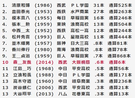 10位内にライオンズの選手が4人か!すげぇな!1位の人の数字は見習ってほしいが生き方は見習わんといてくれよ。
