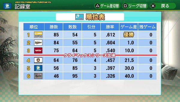 とりあえずデフォルトでペナントまわしてみました。