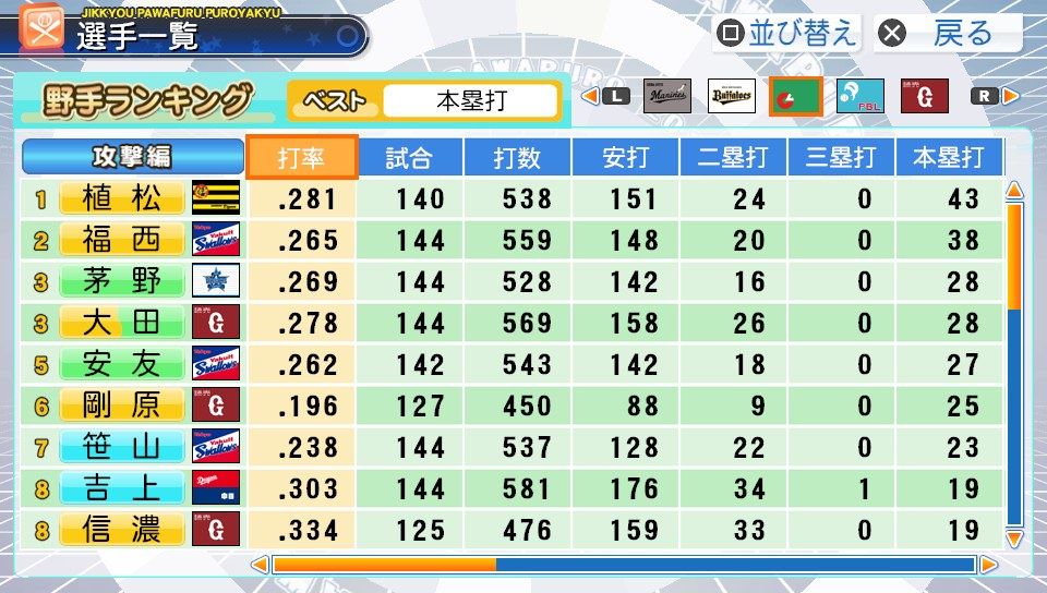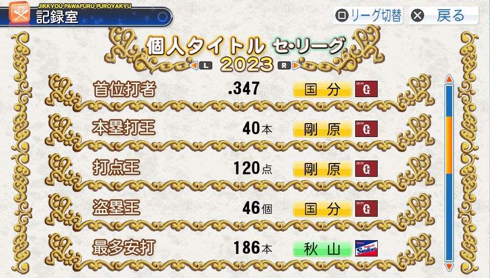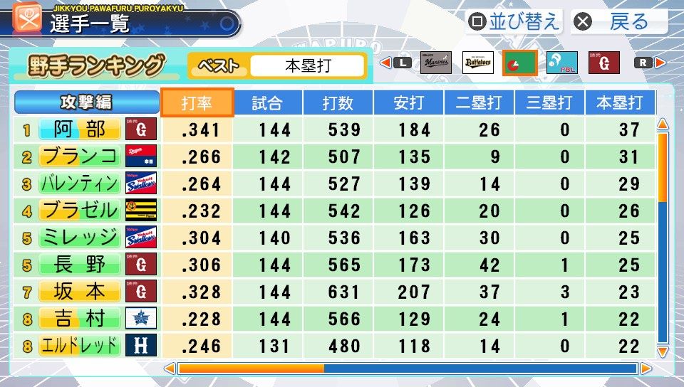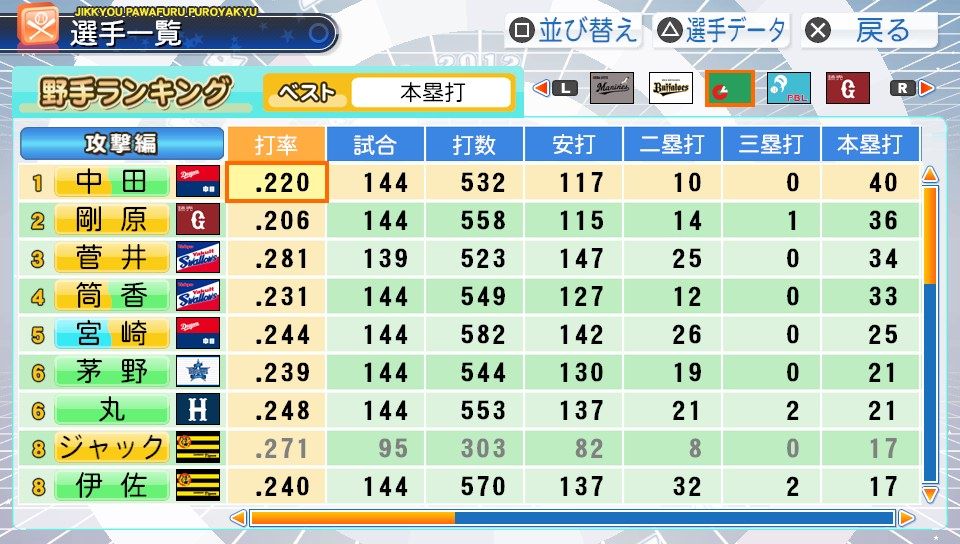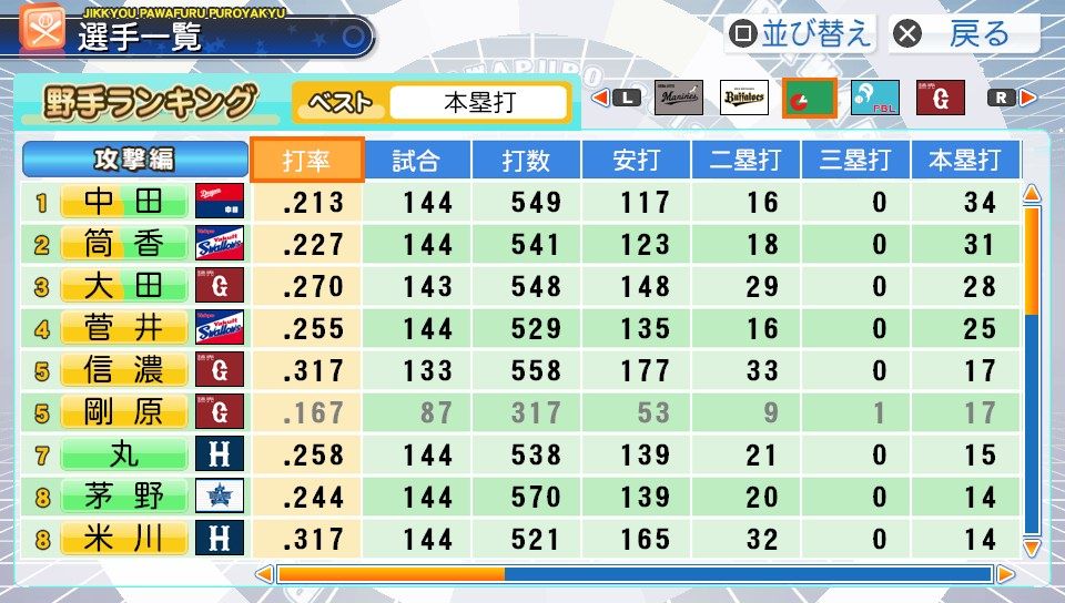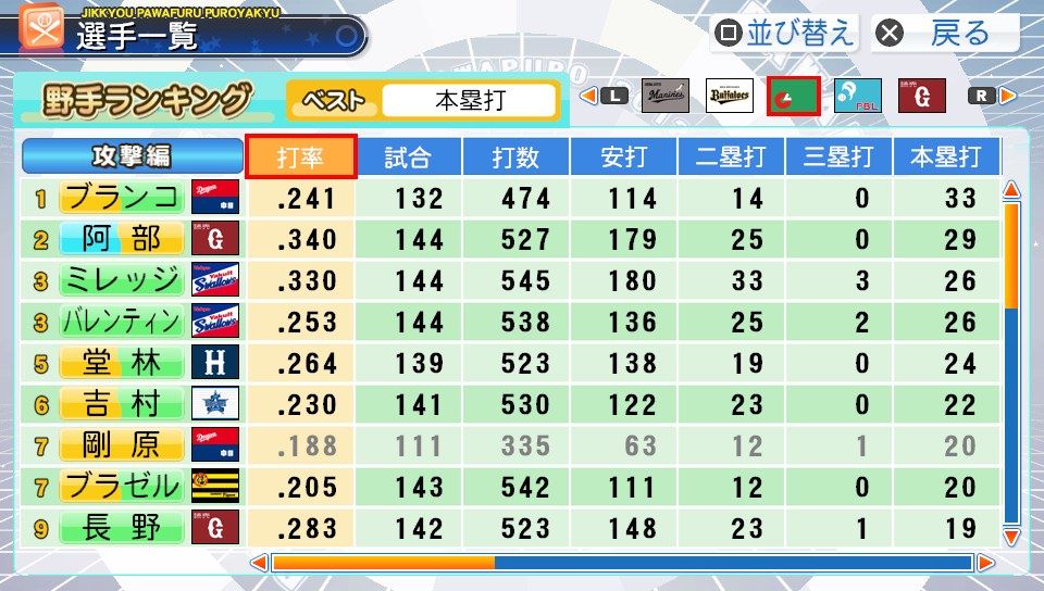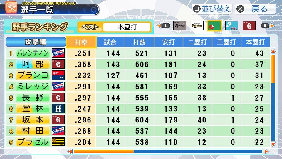 弾4FAAFFG 盗塁5 プルヒッター 内野安打○ ヘッスラ
