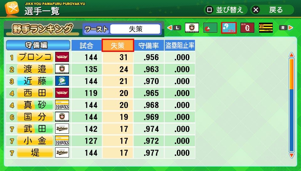 失策21 守備率.969