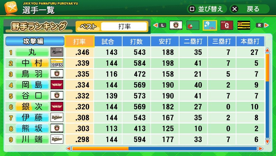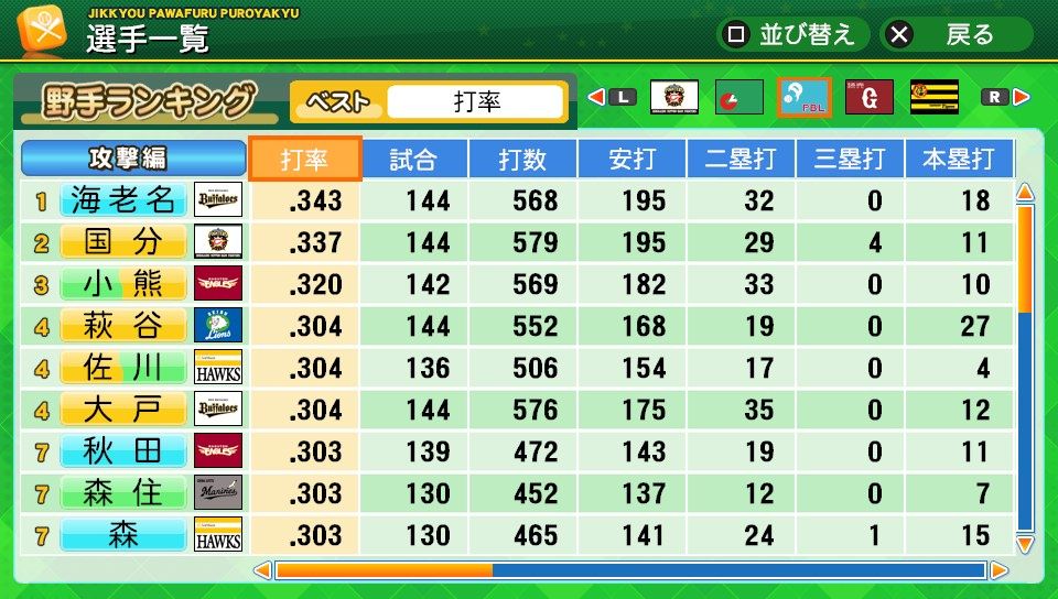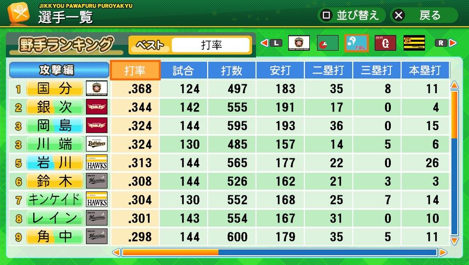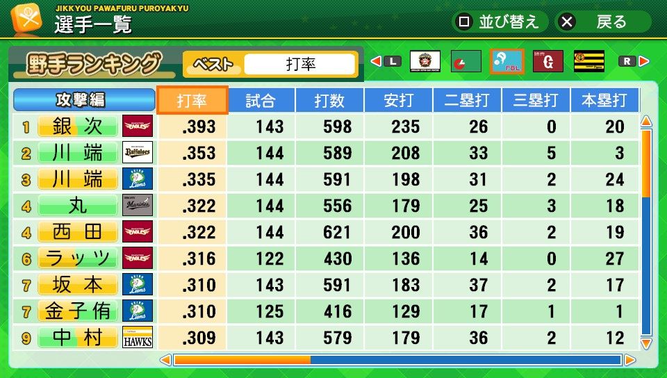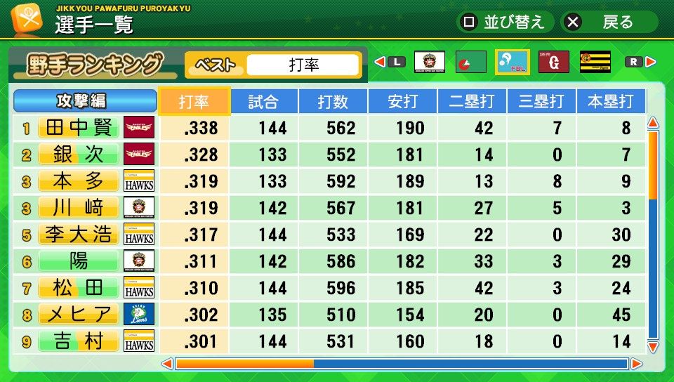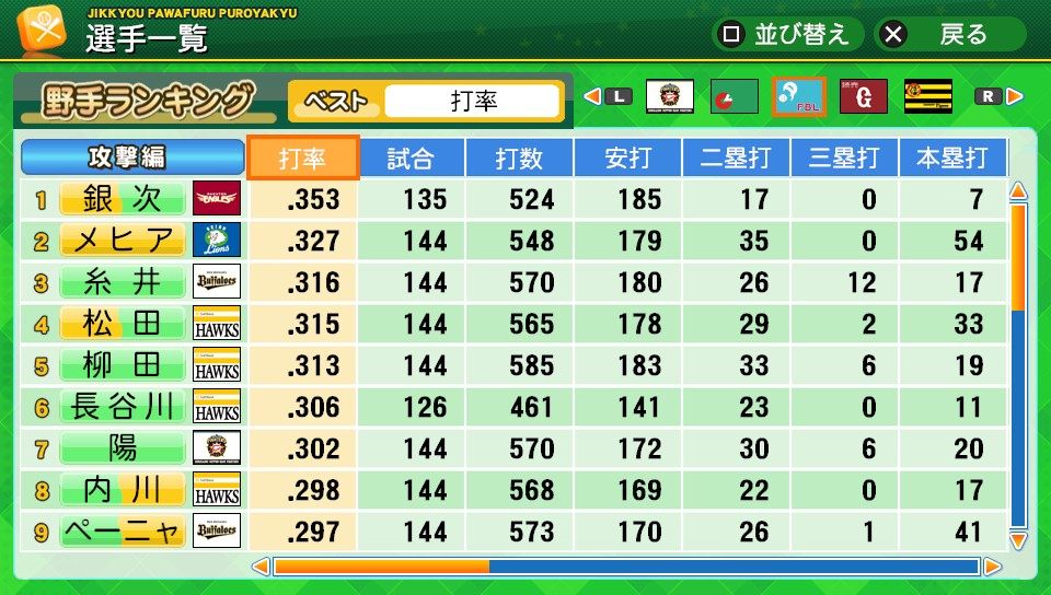 三振71 四球50 死球0 出塁率.335 長打率.410 OPS.745