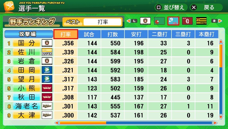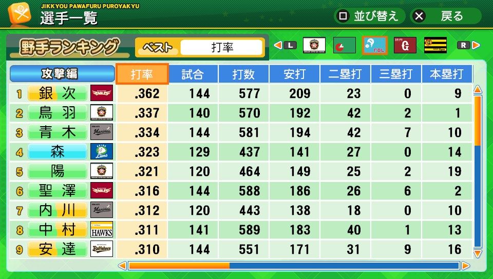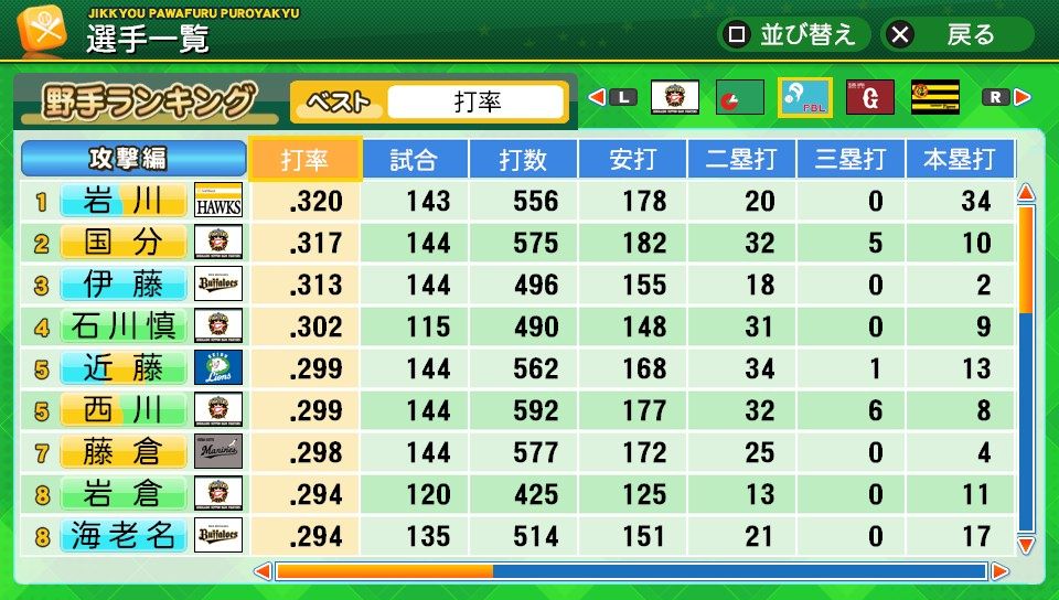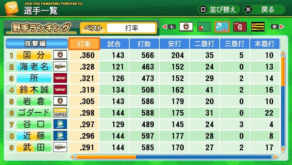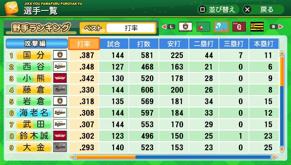 意外性 対左C 走塁C