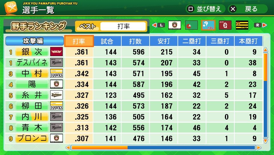三振10 四球5 死球1 出塁率.376 長打率.436 OPS.812