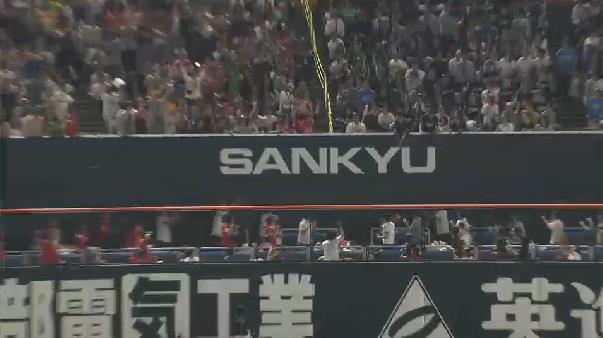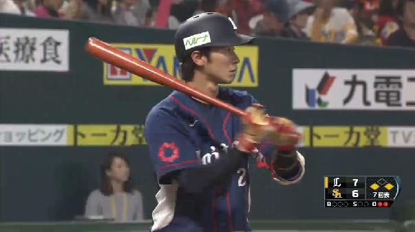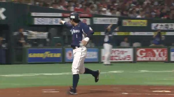 同点に追いついた3回、なお2死一塁でスタンリッジのカットボールを捉え、センターフェンス直撃の二塁打で一塁走者の栗山を生還させた。