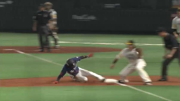 3回表3栗山ヒット金子好走塁1塁3塁 (4)
