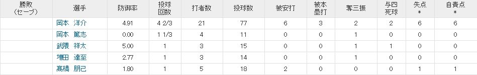 岡洋は投げてるボール自体はそんなに悪くないと思うんやけどなぁ。結果は伴ってないけど勝率5割は勝てる投手だと思うから出来れば先発で使い続けて欲しいです。