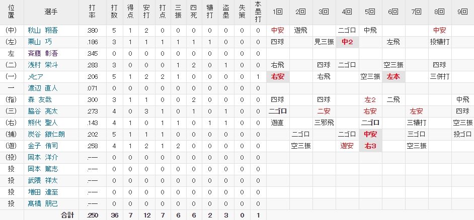 特に嬉しいのは打撃が低迷していた栗山とメヒアの活躍やね。この2人が機能すれば手がつけられない打線になるで!