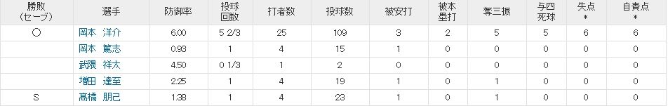 岡洋は休養と調整兼ねて一旦落とすべきやと思う。先発としてはアレでも、リリーフとして必要になってくるやろ。