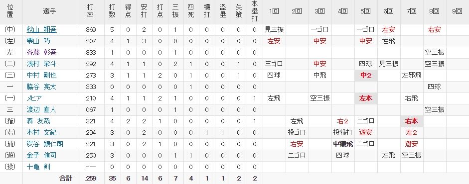 栗山も猛打賞、おかわり君もホームランは残念だったけどタイムリー効果的。