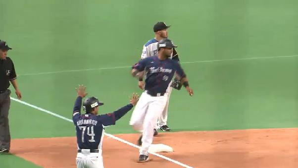中村が2ベースで出塁