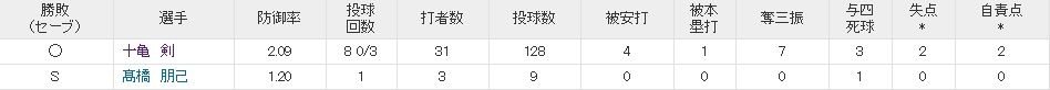 十亀はローテで一番安定してますね。まぁ、最後は完全にガス欠ですね。