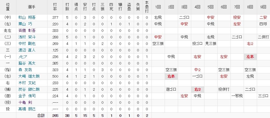 えっ!?斉藤メンドーサから2本ヒット打ったやん!かわいそうやんと思ってたらそういえば去年の大崎メンドーサを3-3でボコボコにしててわろた