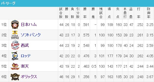 首位打者秋山から柳田に入れ替わってるやん