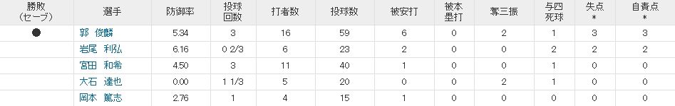 やはり中継ぎが穴ですね。岩尾が少し酷すぎたな。押し出しなんてシャレにならんし・・・