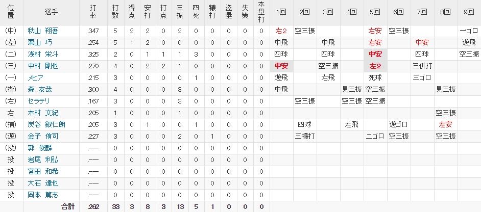 栗山や浅村がどんなに頑張っても結局おかわりが大事な場面で打たないと