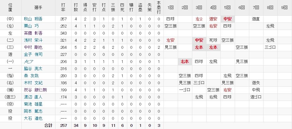 メヒアの一発は好調の兆しになればいいが・・・あとおかわりも久々に機能したな・・・まさかのおかわり満塁弾は吹いたwwww