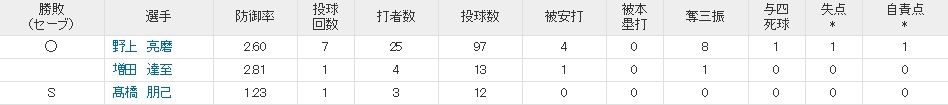 森復活の兆しやし野上文句なしやし勝ち継投順当に仕事したし