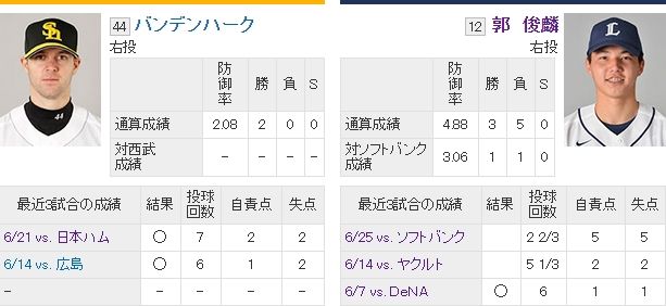 明日はソフバン噂の期待の外人バンデンハーグかぁ・・・郭が炎上しなければ勝機あるな・・・