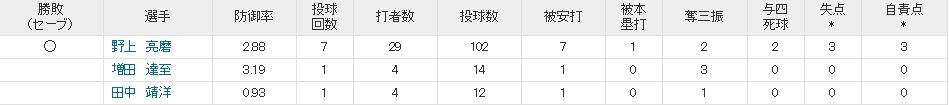 野上の立ち上がりは悪かったがソフバン相手に大量失点しなかったことは評価だな。