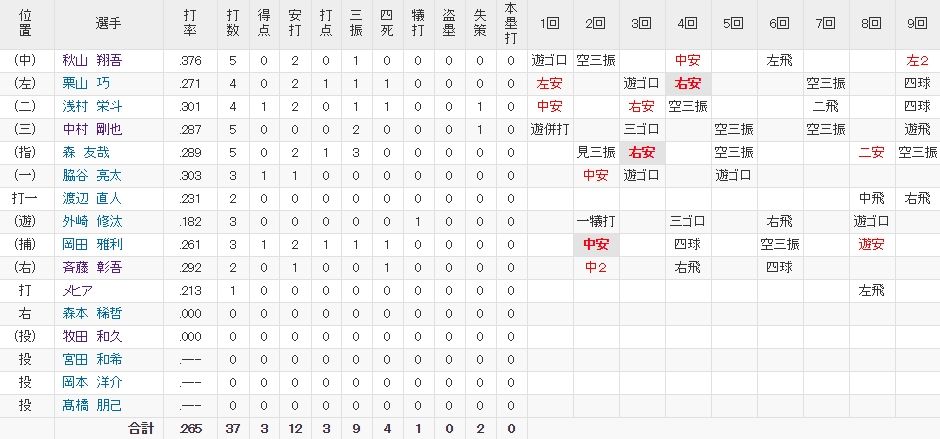 4回裏1フォアボール秋山ヒット1塁3塁2アウト (1)