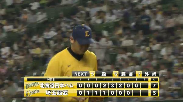 日本ハムは4回、レアードが同点2ラン。その裏に西武に1点を勝ち越されるが、5回に陽が逆転3ラン。6回にも2点追加した。