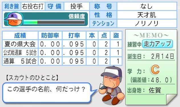 最近は10とパワポケばかりで栄冠は全くやっとらんなぁ。甲子園が始まったらデータ消して最初からやり直そう。