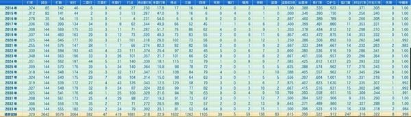 1犠打 6併殺 2盗塁(.400)出塁率 .431 長打率 .481 OPS .880 0失策