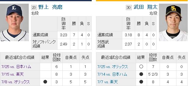 ホークスキラーVS西武キラーやね。結局は打線次第か…。