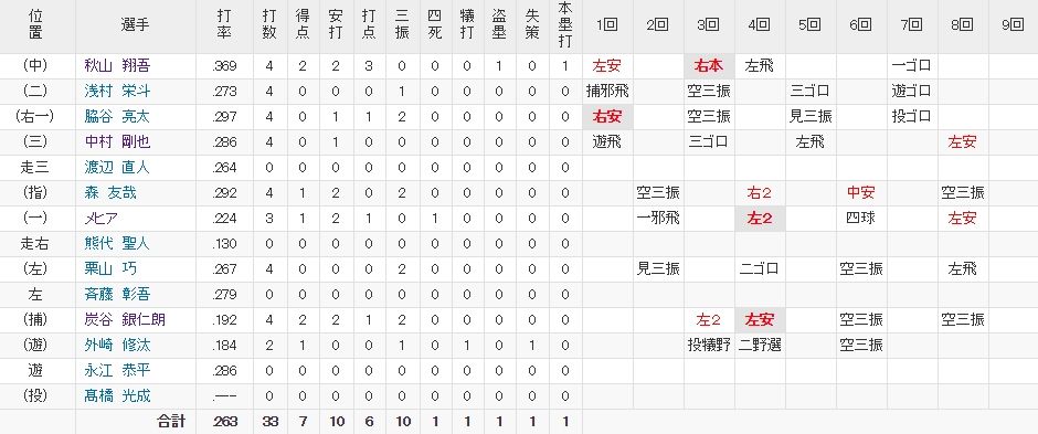 打線も秋山と炭谷を中心によく繋いで点を取ってくれました。ナイスゲーム!
