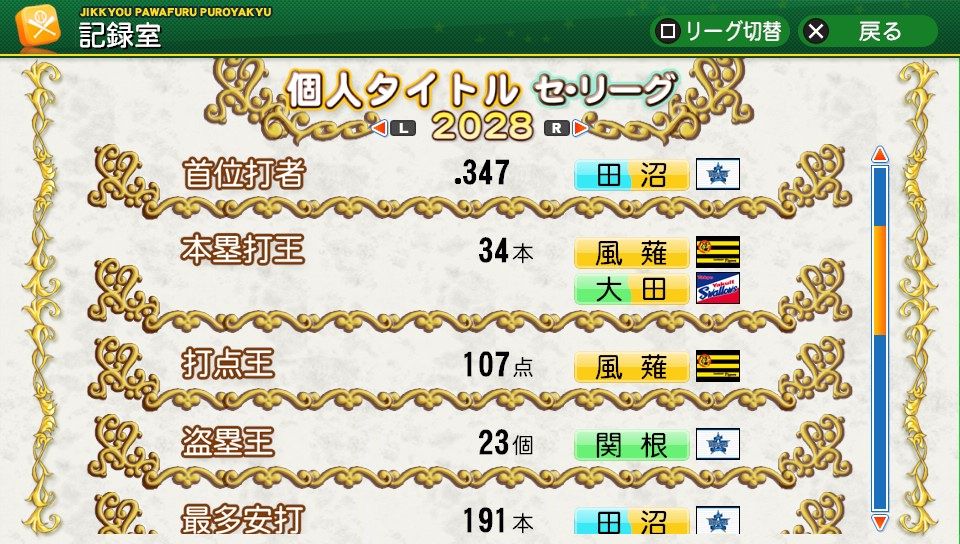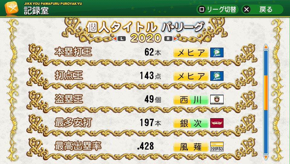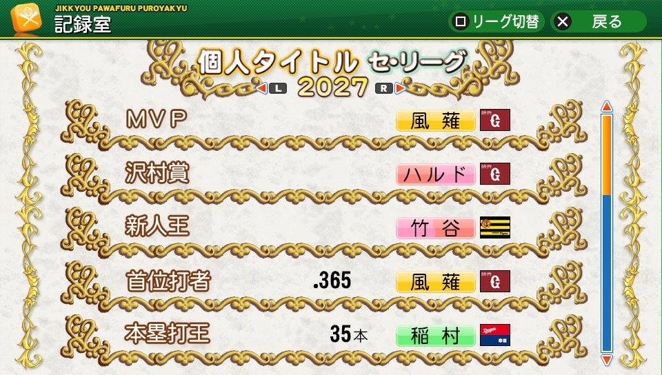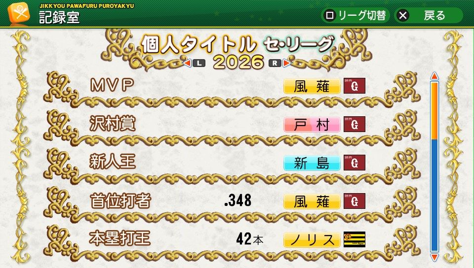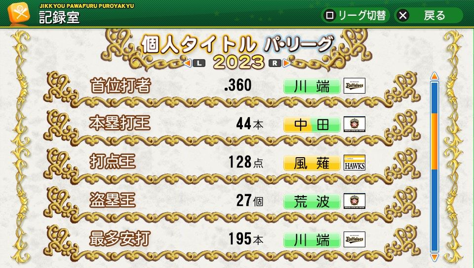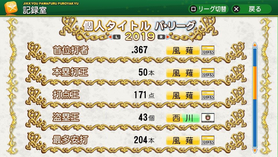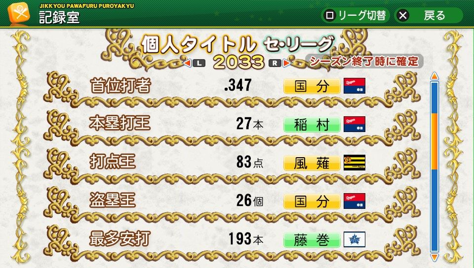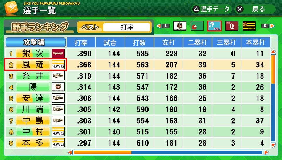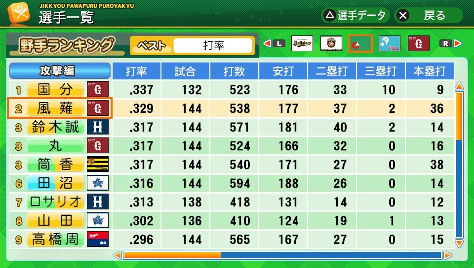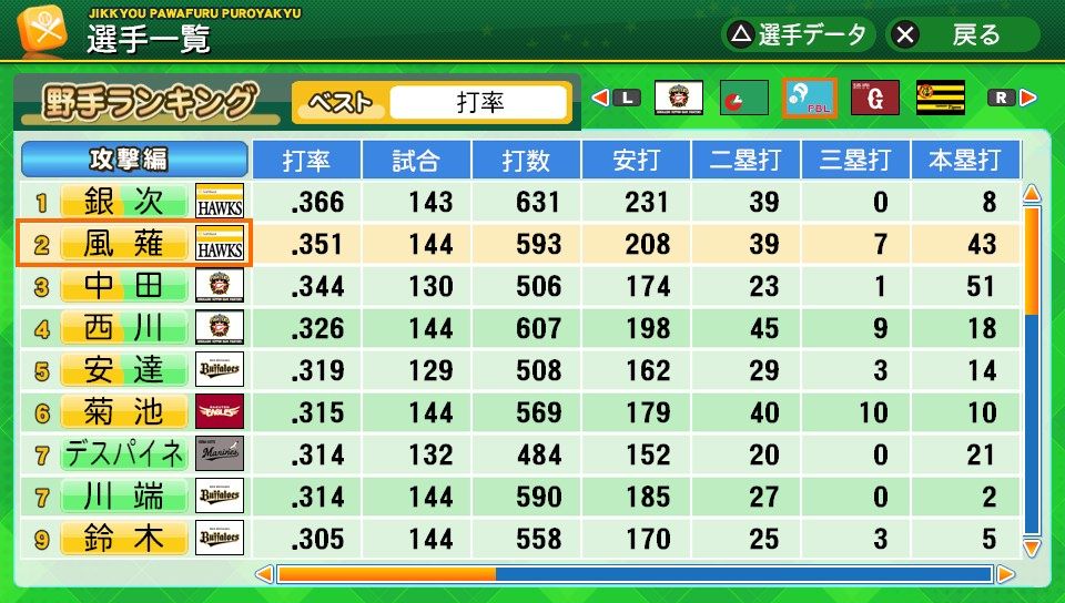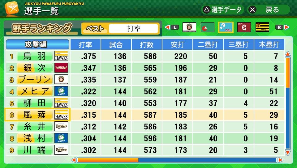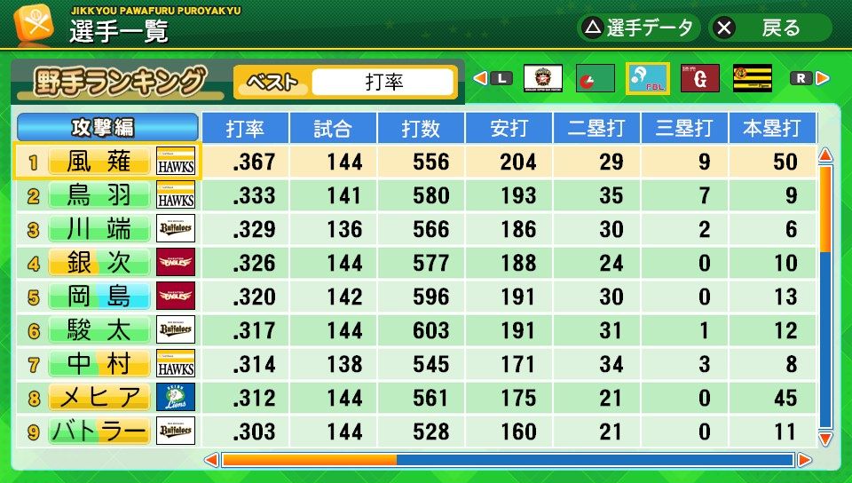 相変わらず初球とか対左とか特能が消えまくりだな