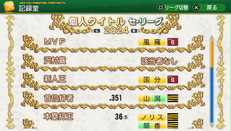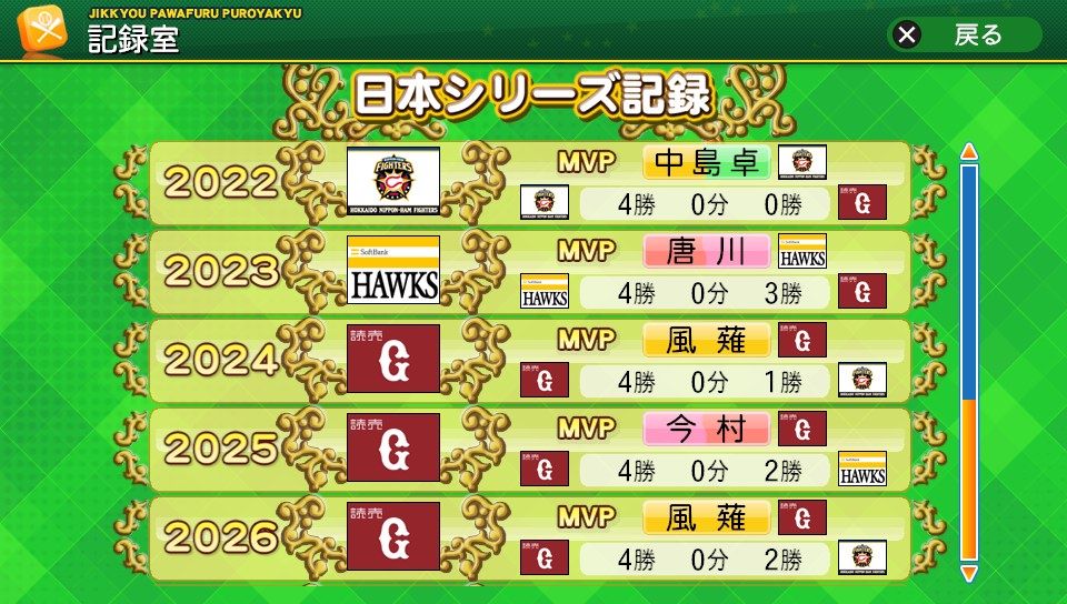 風薙は日本シリーズMVPを受賞