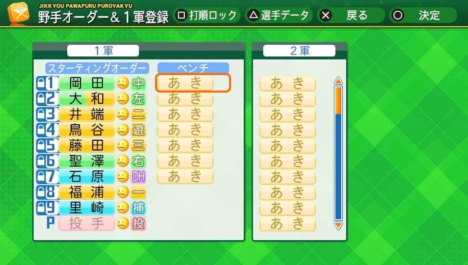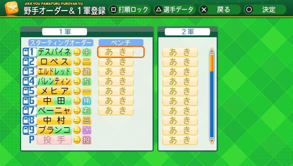 DH制を使用し、怪我、移籍、外国人枠など全てオフでやりますが交流戦などDHが使えない際はDHに設定した選手を抜きます
