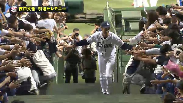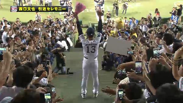 西口最後の登板を見に来たわ。