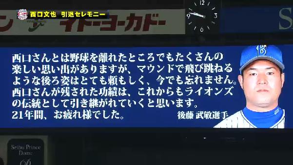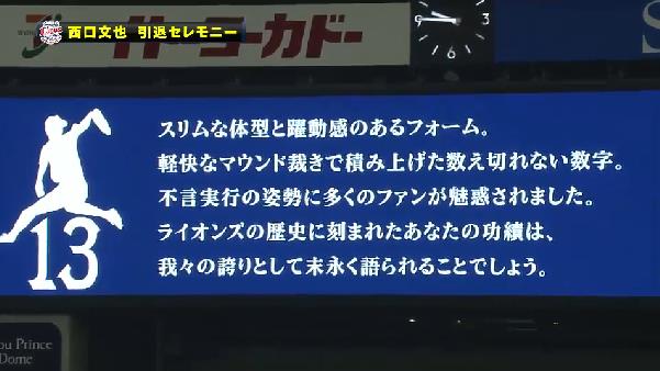 物心ついてライオンズファンになったときには既にエース西口の存在があって、ずっとこの背番号13を見てきたら、今まで見た引退試合の中でも1番感慨深い引退試合になりました。