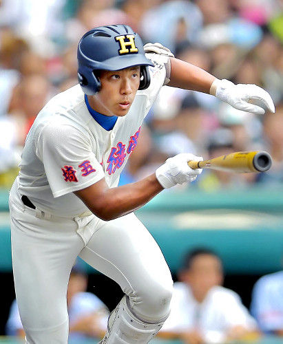 自慢の快足で18安打15得点の大勝に花を添えた。花咲徳栄(埼玉)のプロ注目4番・大滝愛斗外野手(3年)がランニング本塁打を含む3安打3打点。「足が一番の売りなので」と表情を緩めた。九回1死一塁の第6打席だ。直球を捉えて左翼フェンスを直撃した打球が、芝生を転々とするのを見て一気に加速。50メートル走6秒0の俊足を飛ばして本塁に滑り込んだ。高校通算28号で初のランニング弾に「欲を言えば柵越えがよかったけど、点に絡んだのでよかった」と、チーム第一を強調した。2年生4番だった昨夏は県大会初戦で敗退。以来、エゴは捨てた。第2試合で関東第一のオコエが大暴れしたが「意識はしない。チームが勝てればいい」とキッパリ。同じ三拍子そろった、右打ちの中堅手。花咲徳栄には、大滝がいる。「絶対にプロになりたい。だからいい成績を残す。見返したいし、弟2人(小5と小4)や家族にも恩返しがしたい」。強い気持ちで結果を出した 大滝ランニング弾!花咲徳栄15点大勝/デイリースポーツ online「全国高校野球・2回戦、花咲徳栄15-3三沢商」(11日、甲子園) 自慢の快足で18安打15得点の大勝に花を添えた。花咲徳栄(埼玉)のプロ注目4番・大滝愛斗外野手(3年)がランニング本塁打を含む3安打3打点。「足が一番の売りなので」と表情を...