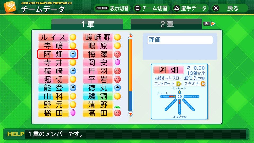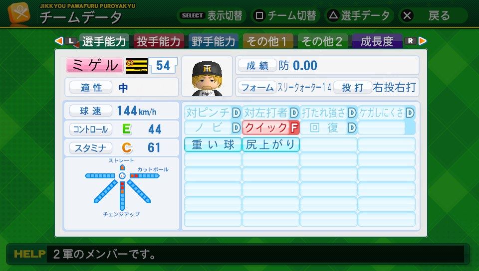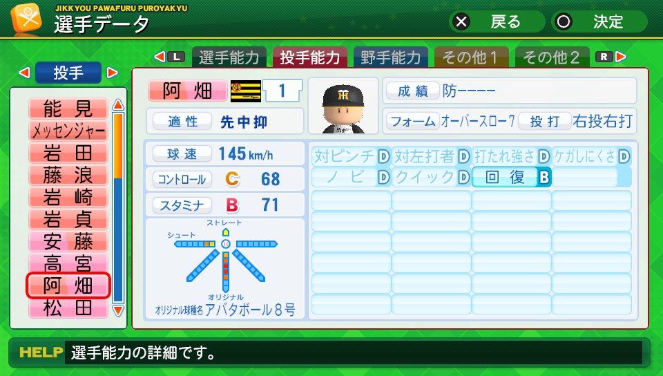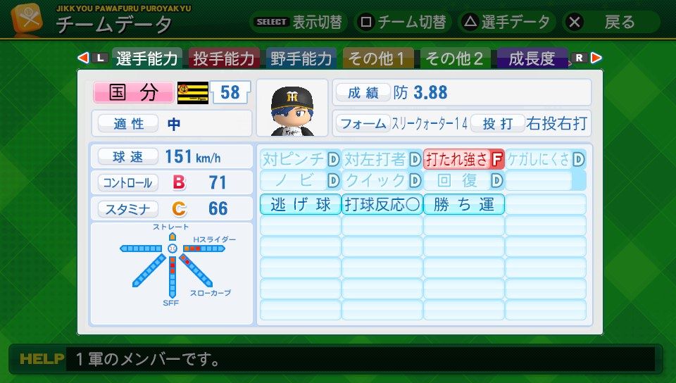 球速141km/h コD55 スB72 シュート3 アバタボール8号2