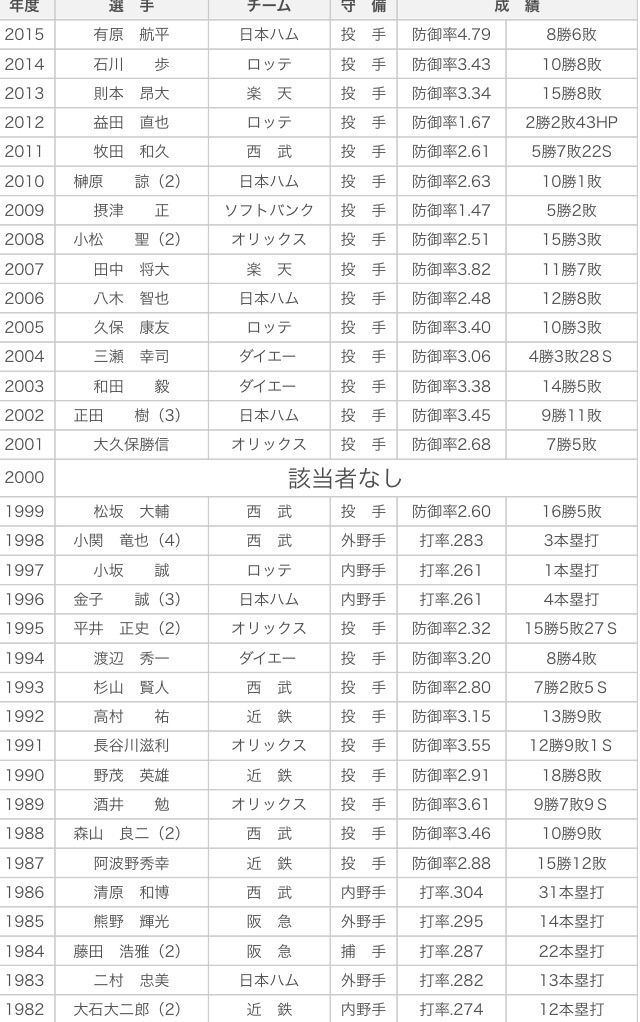 但し白村も新人王に相応しい成績とは言えないので該当なしがベター