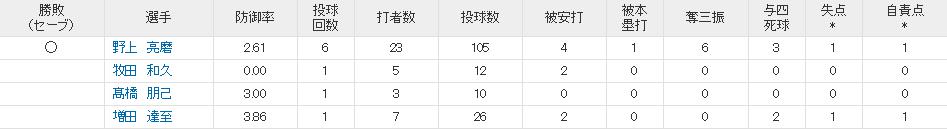 野上はコントロールが酷くて、昨年の雄星かよと思ったけども6回良くもった