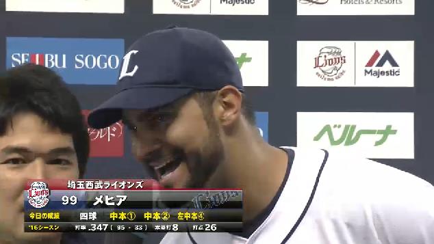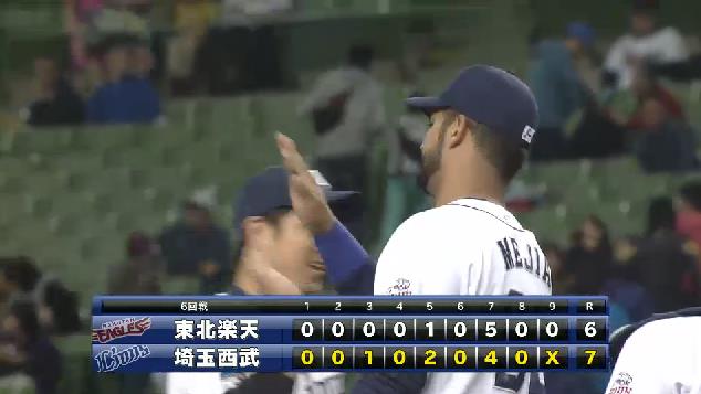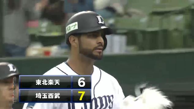 西武メヒアが3連発で7打点の大暴れ 連敗ストップ<西武7-6楽天>◇24日◇西武プリンスドーム西武は3回、メヒアのバックスクリーン左への6号ソロで先制。楽天は3回まで1安打無得点に抑えられた。楽天は5回表に島内の適時三塁打で同点。西武はその裏、メヒアの2打席連続となる7号2ランで再び勝ち越した。西武は3点を勝ち越された直後の7回にメヒアが3打席連発の8号満塁弾。全7打点を挙げ、引き分けを挟む連敗を2で止めた。